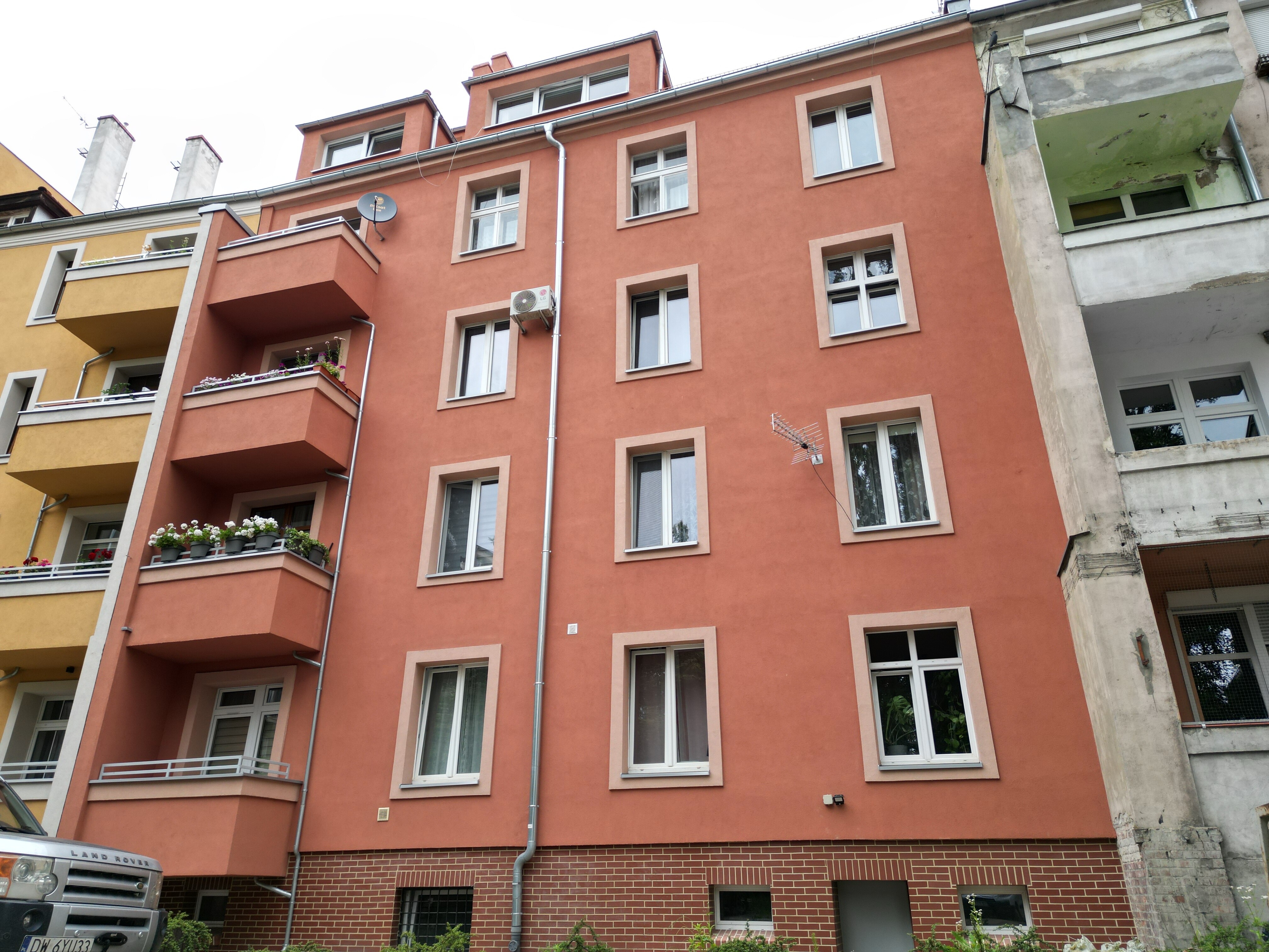 Zakres prac: Remont elewacji frontowej kamienicy wraz z termoizolacją elewacji tylnej i remontu balkonów