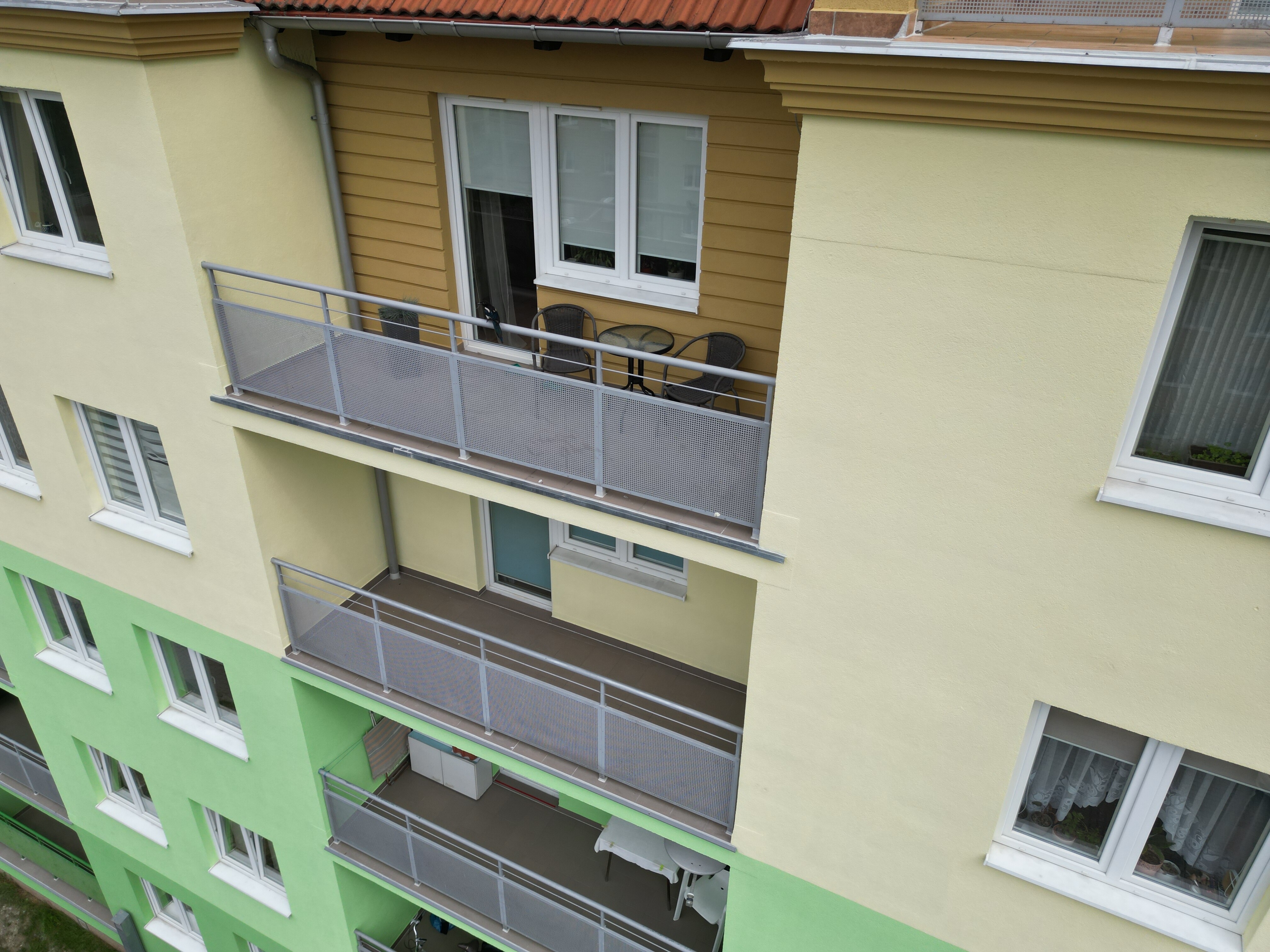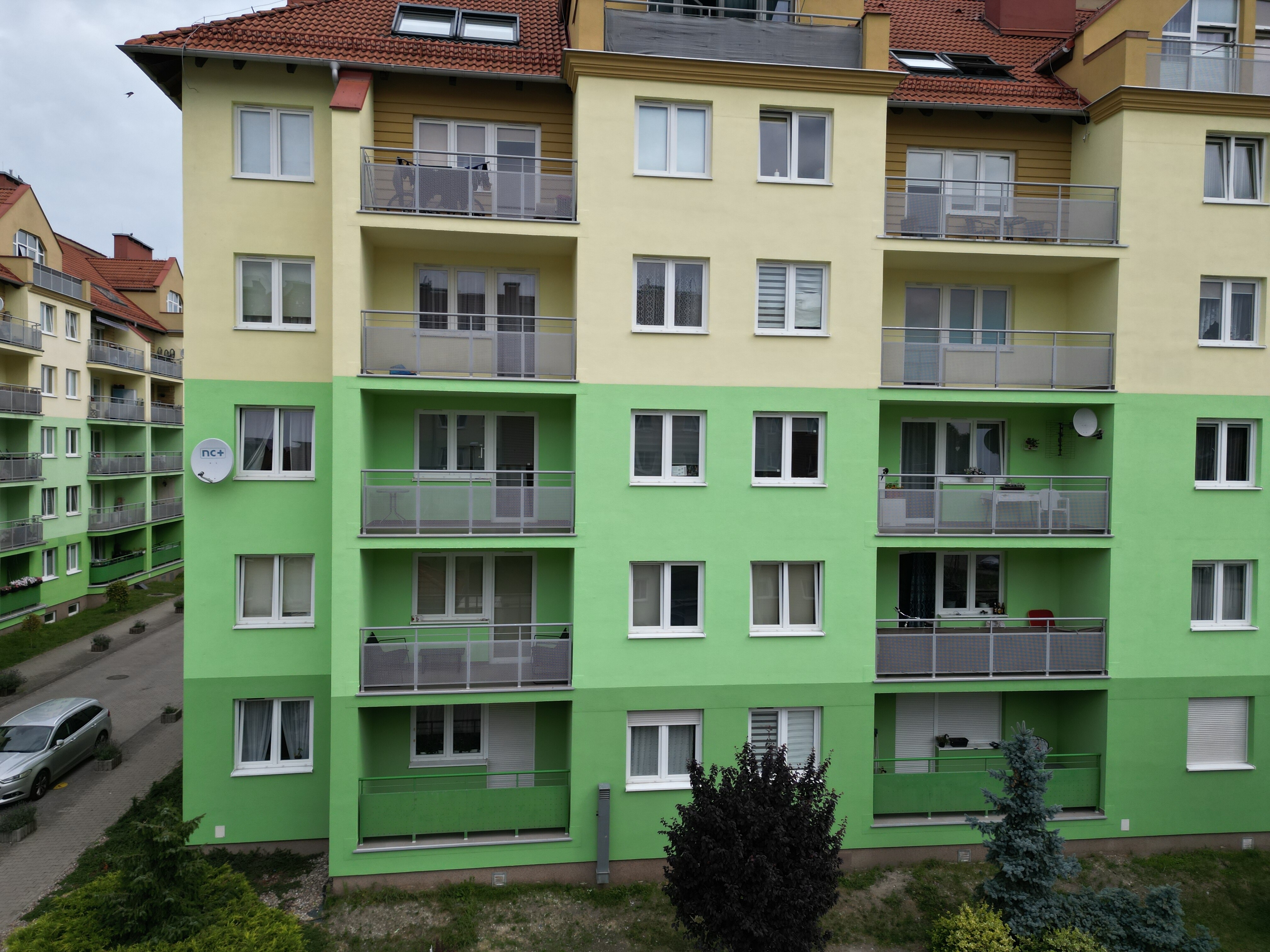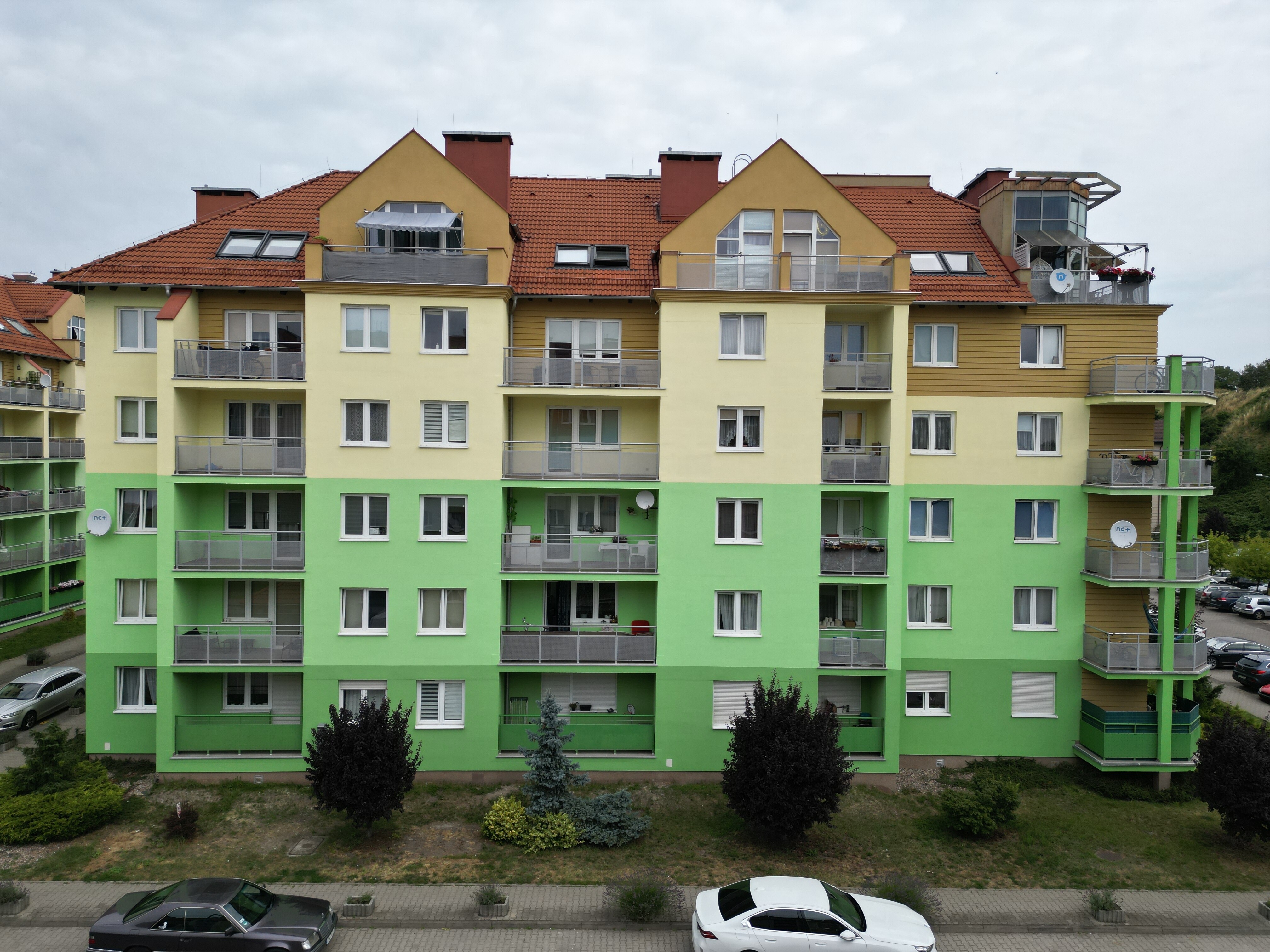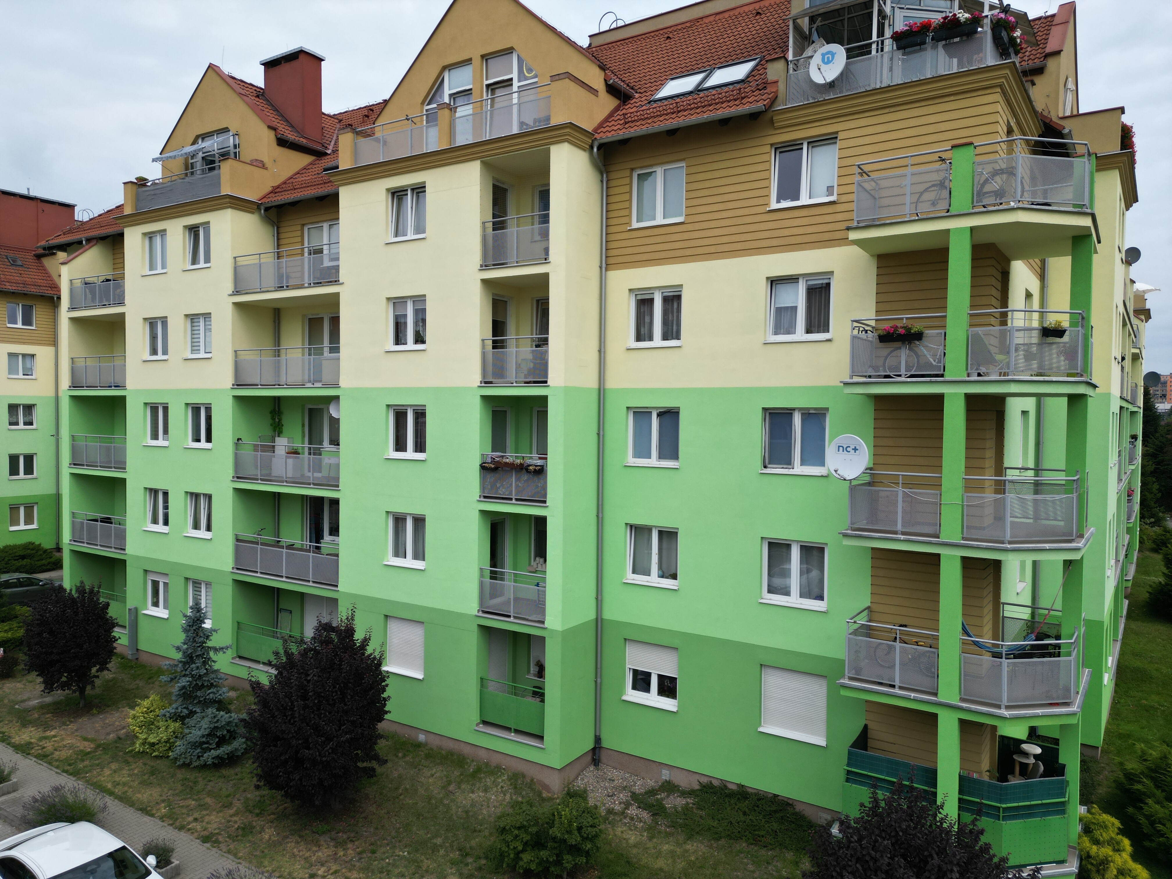 Równolegle przeprowadzono kompleksowy remont balkonów. Roboty objęły wykonanie nowych hydroizolacji, wymianę okładzin podłogowych oraz odświeżenie balustrad, które oczyszczono, zabezpieczono antykorozyjnie i pomalowano. Dodatkowo uzupełniono obróbki blacharskie oraz naprawiono elementy konstrukcyjne, co przywróciło pełną funkcjonalność i bezpieczeństwo użytkowania balkonów.